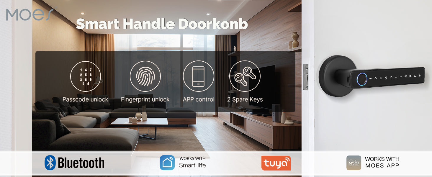If you want to use the intelligent functions of this door knob, such as voice control, app unlock, one-time password, history record, etc., you need to use it in conjunction with the MOES Bluetooth Gateway.