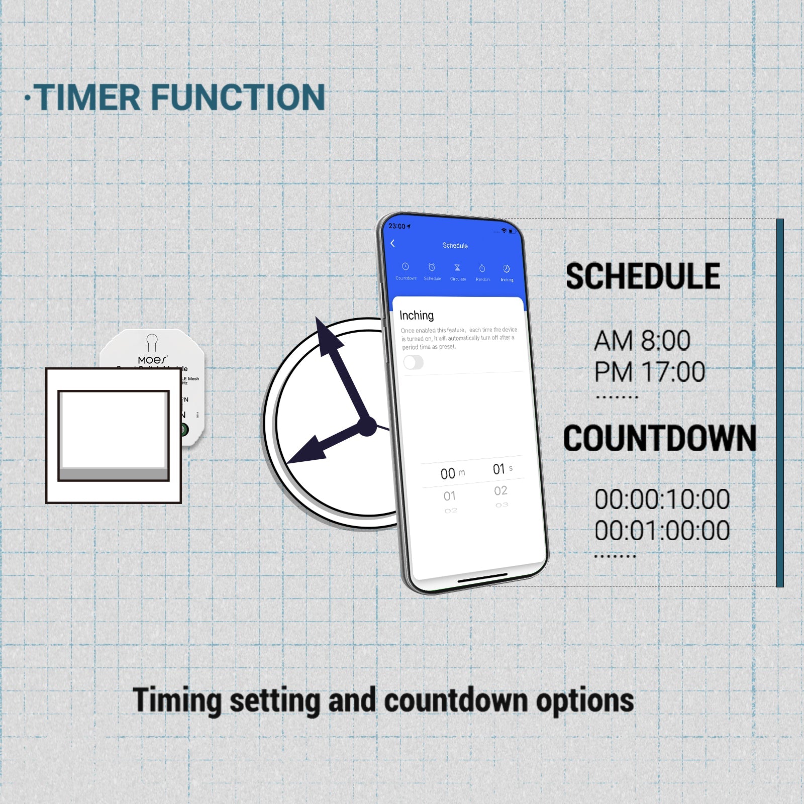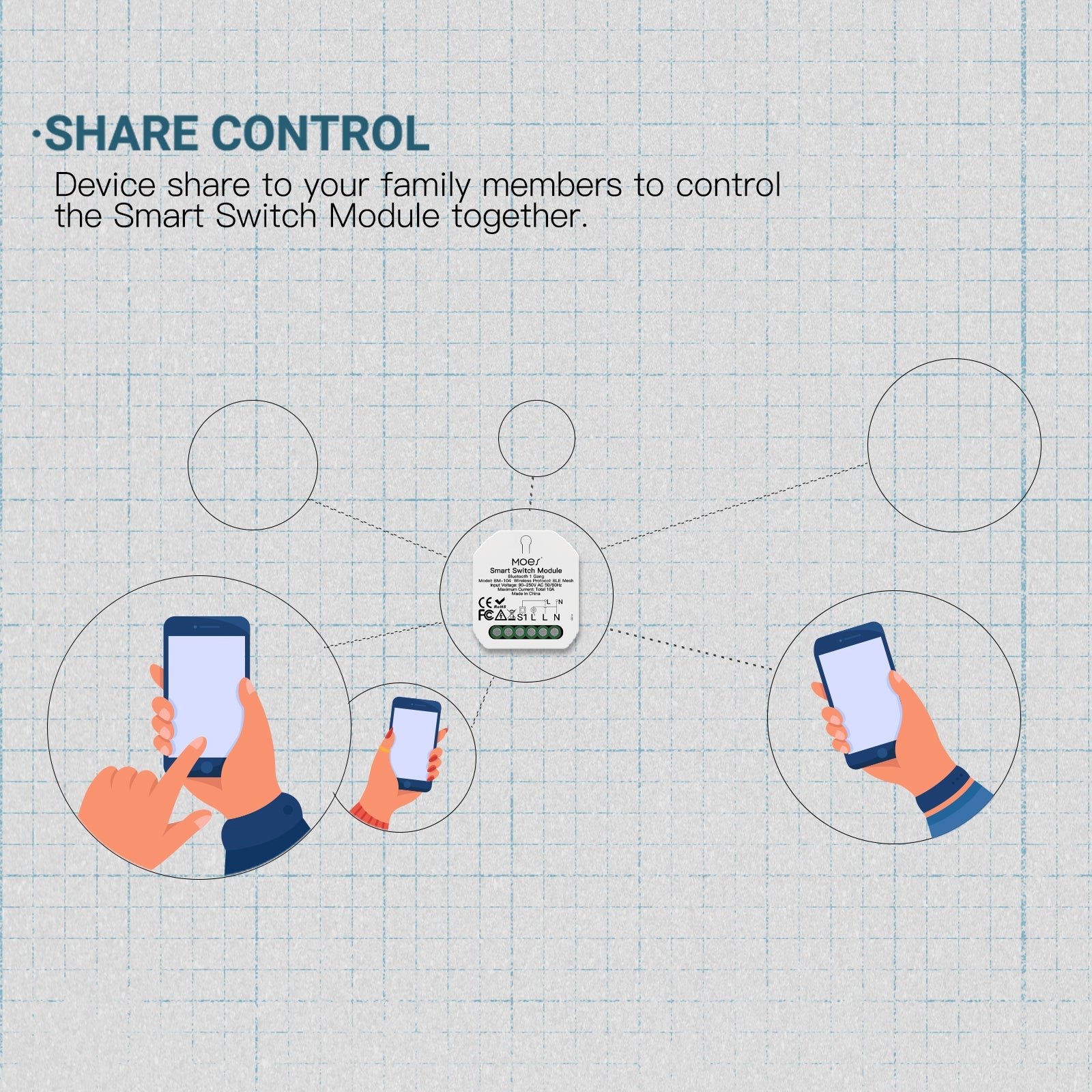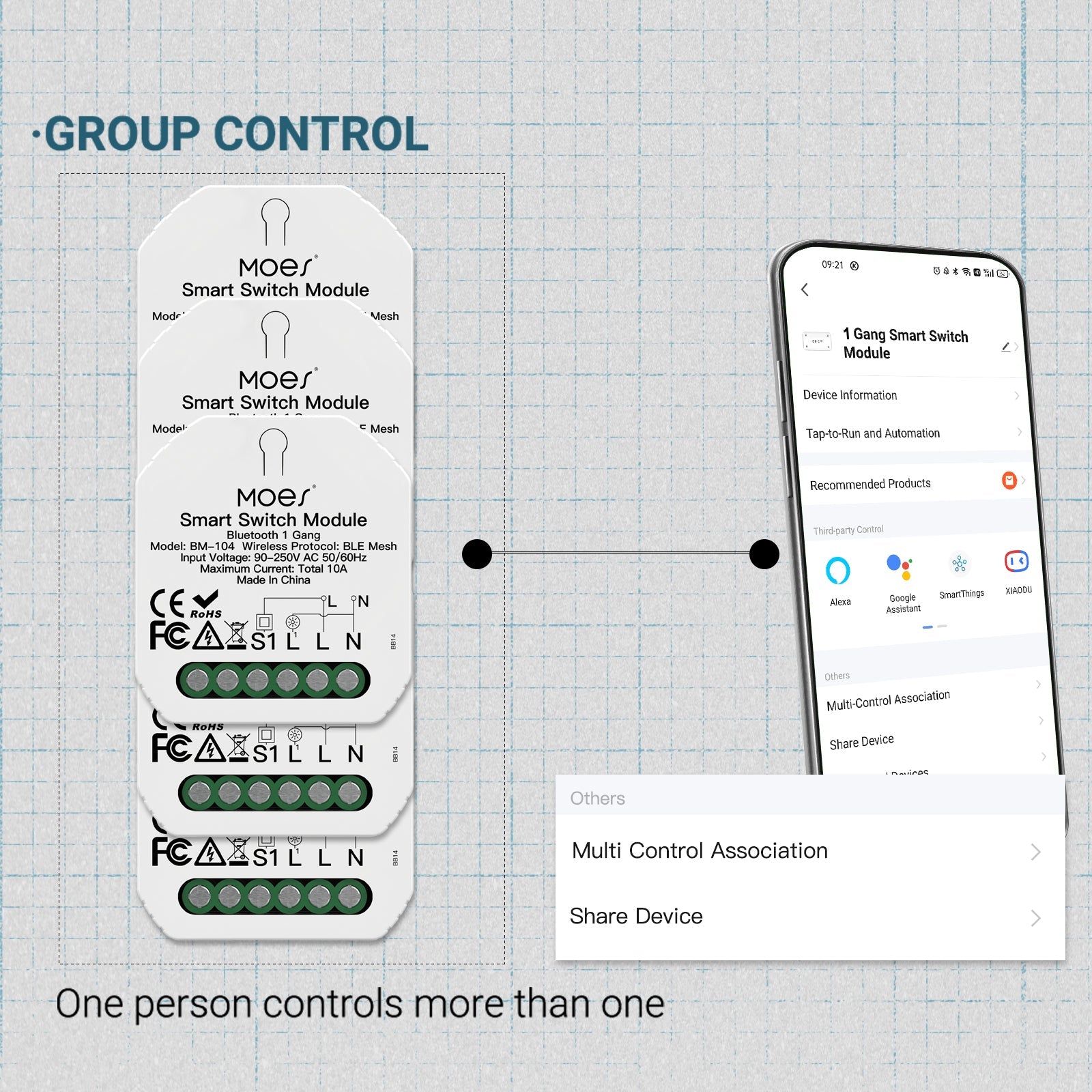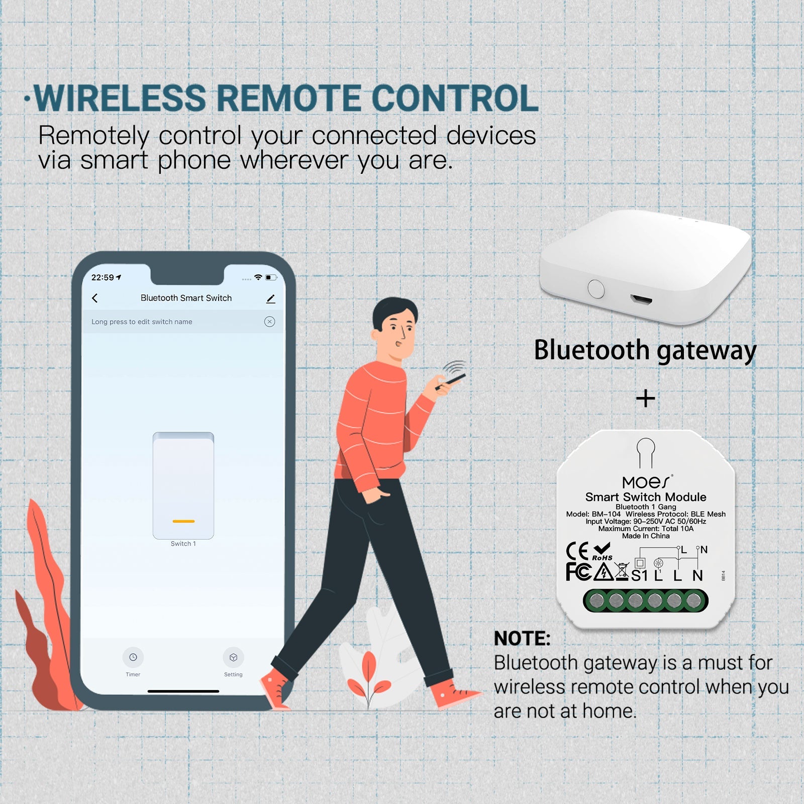 Bluetooth Smart Mini Switch Module - 1 Gang & 2 Gang BLE SIGMESH Circuit Breaker, DIY Wireless Light Switch, No Hub Required, Works with Alexa/Google Home, Smart Life App Control (90-250V)