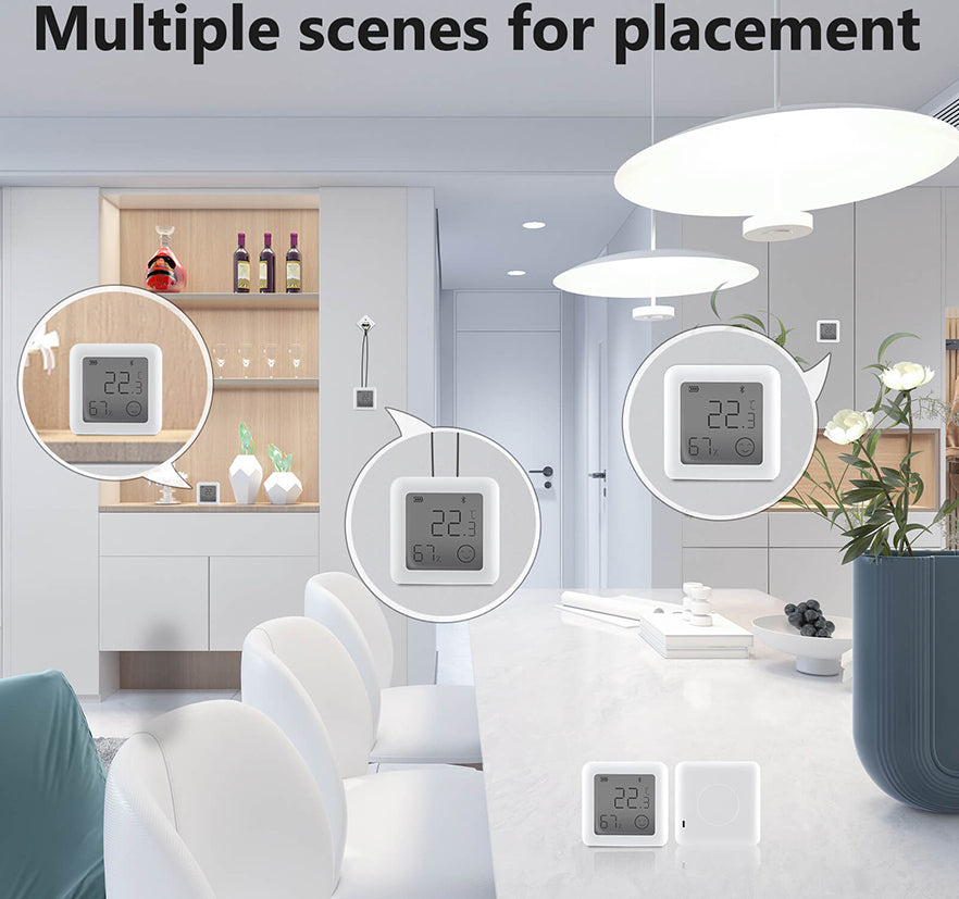 Furthermore, this smart sensor allows you to personalize your home environment by customizing scenes that cater to your comfort preferences. During chilly weather, rest assured that the heat thermostat will automatically kick in to keep you warm and cosy. Please note that the scene function requires the use of a Bluetooth hub and an IR remote controller, which can be purchased separately should you desire additional control options. However, for point-to-point control within your home, there is no need for a Bluetooth hub. Upgrade your home monitoring system today with the Bluetooth Smart Temperature Humidity Sensor - the epitome of reliability, versatility, and efficiency.
