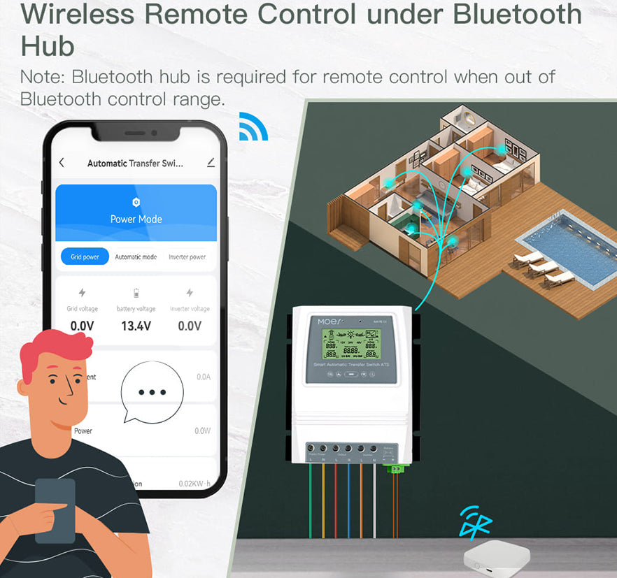 📲 Smart Bluetooth APP Control – Monitor real-time voltage, current, and power status via the MOES app (iOS/Android). Adjust custom set points remotely for DC/AC systems.