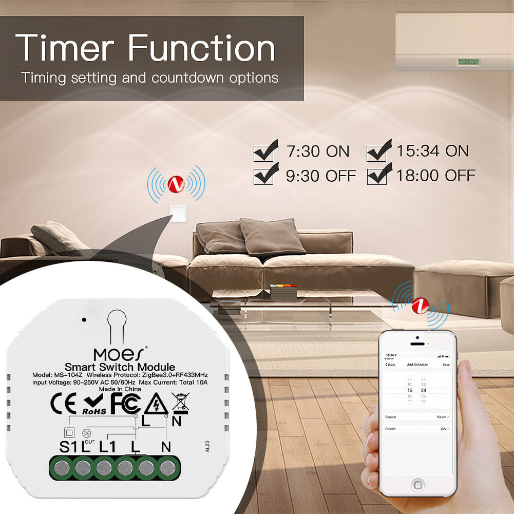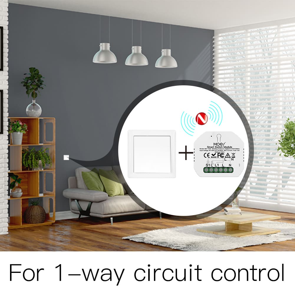 MOES Tuya ZigBee+RF Switch Module, a versatile solution for your smart home. It seamlessly integrates with voice control platforms like Alexa and Google Home. With a sleek design, it offers customizable options to suit your needs. This device delivers reliable performance and energy-efficient control over your home lighting system.