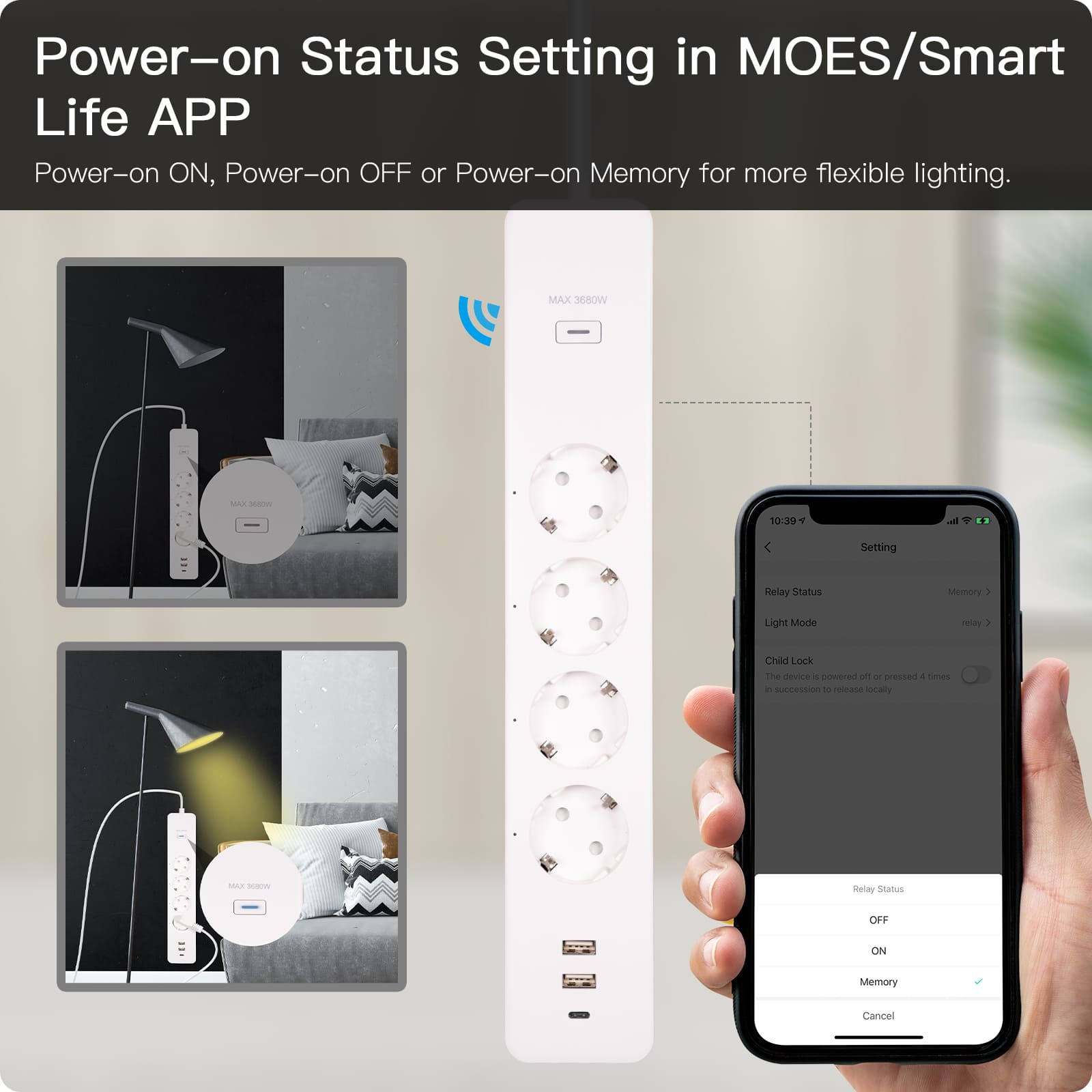 MOES WiFi Smart Power Strip with Surge Protection & Energy Monitoring