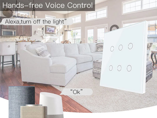 Seamless Smart Control – Manage your lights effortlessly with this WiFi & RF433-enabled 6-gang smart switch, compatible with Alexa, Google Home, and smart apps. Enjoy remote control, voice commands, and timer automation for ultimate convenience.