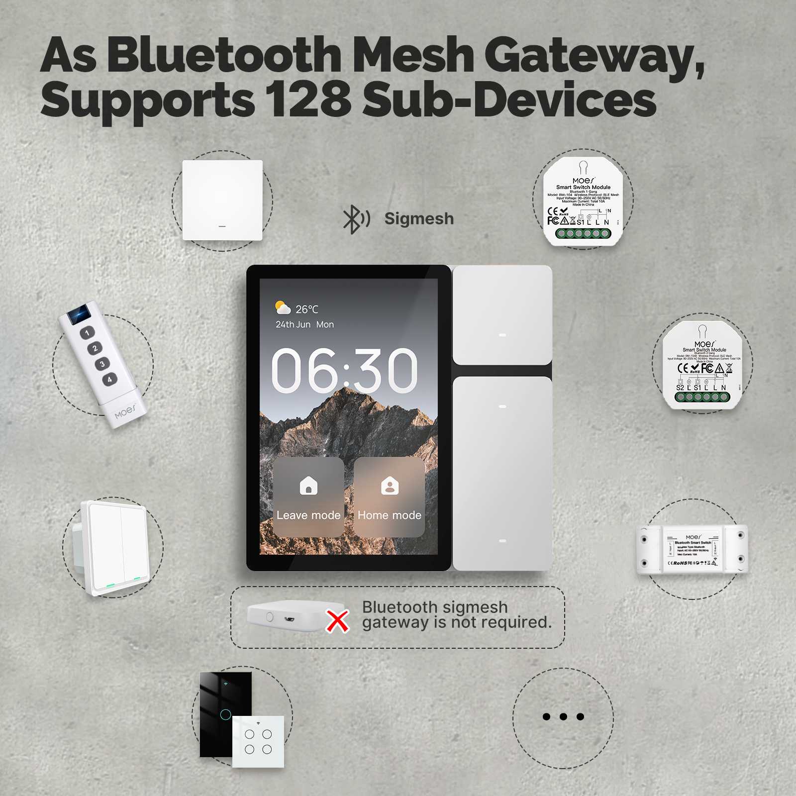 It can be used as a Bluetooth Sigmesh gateway, supporting the addition of up to 128 sub-devices, which can basically cover the household control requirements for Bluetooth Sigmesh devices.
