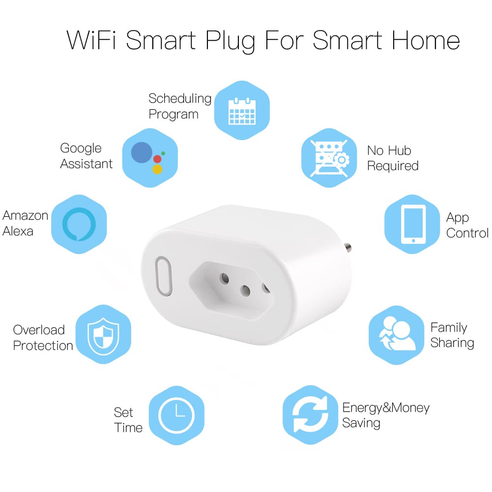 WiFi Smart Plug with Energy Monitor - 16A Smart Socket BR Standard, Works with Alexa & Google Home, App Control, Power Consumption Tracking, 3680W Heavy Duty