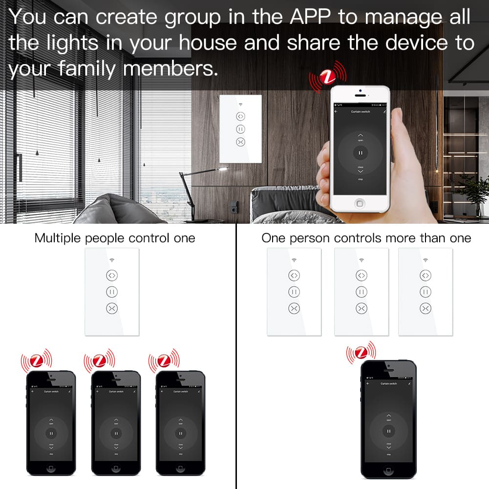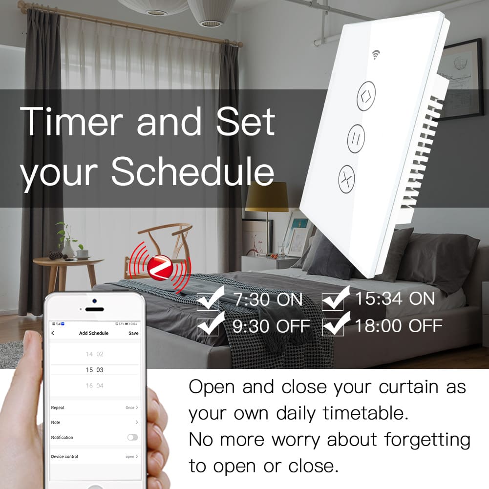 ZigBee & RF433 Smart Curtain Blinds Shutter Touch Switch – Neutral Wire Required, Works with Alexa/Google Home, SmartThings, Hub Required, Multi-Control, US Version (Timers & Remote Control)