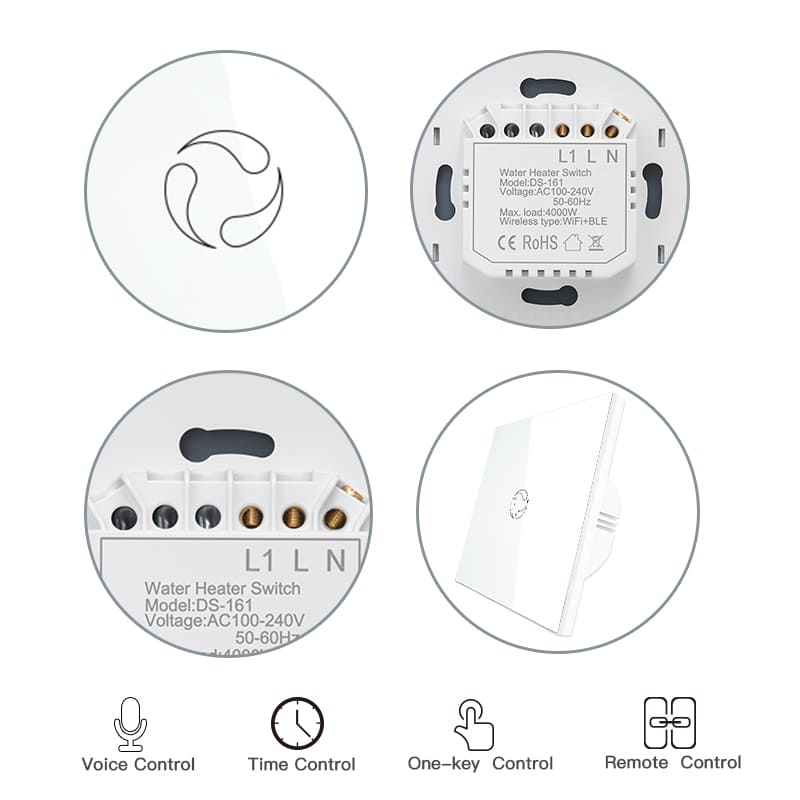 ZigBee Smart Boiler Touch Switch – Water Heater Switch, 20A 230V, Single Pole, Neutral Wire Required, EU Version, Works with Alexa, Google Home & SmartThings, Hub Required, App Control & Timer
