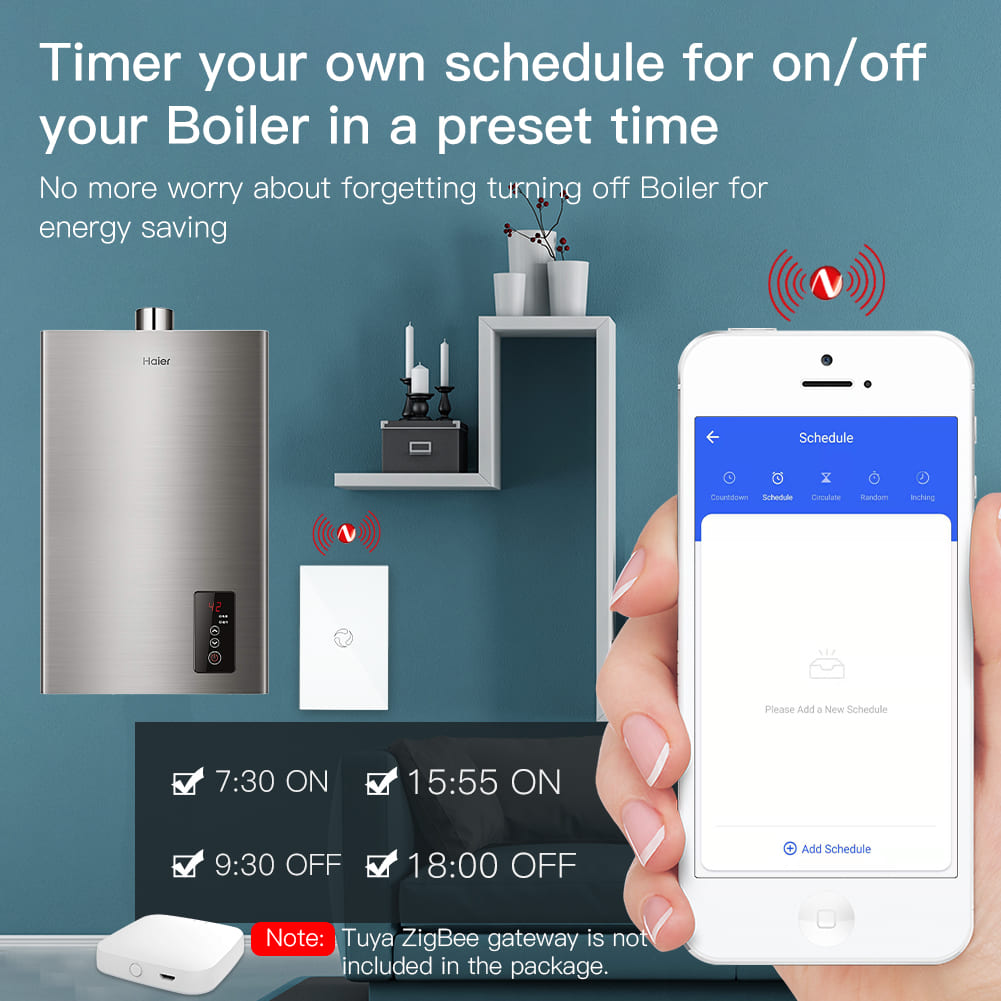 ZigBee Smart Boiler Touch Switch – Water Heater Switch, Single Pole, Neutral Wire Required, 20A/40A, 100-240V, Works with Alexa, Google Home & SmartThings, Hub Required, Remote Control & Scheduling (US Standard)