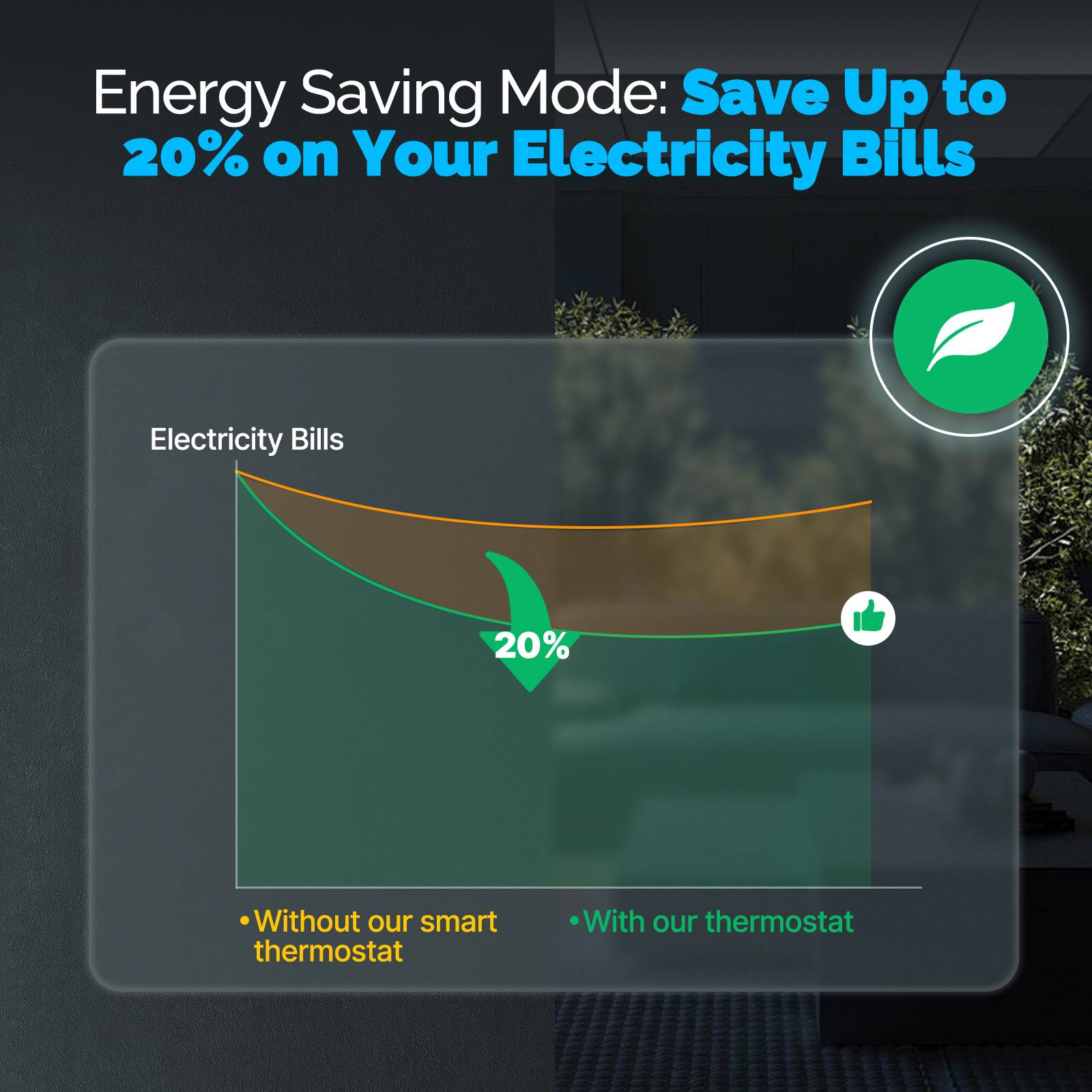 After turning on the energy-saving mode, the heating temperature will be adjusted to the energy-saving temperature you set in the APP. Statistics show that it can save you up to 20% of electricity bills.